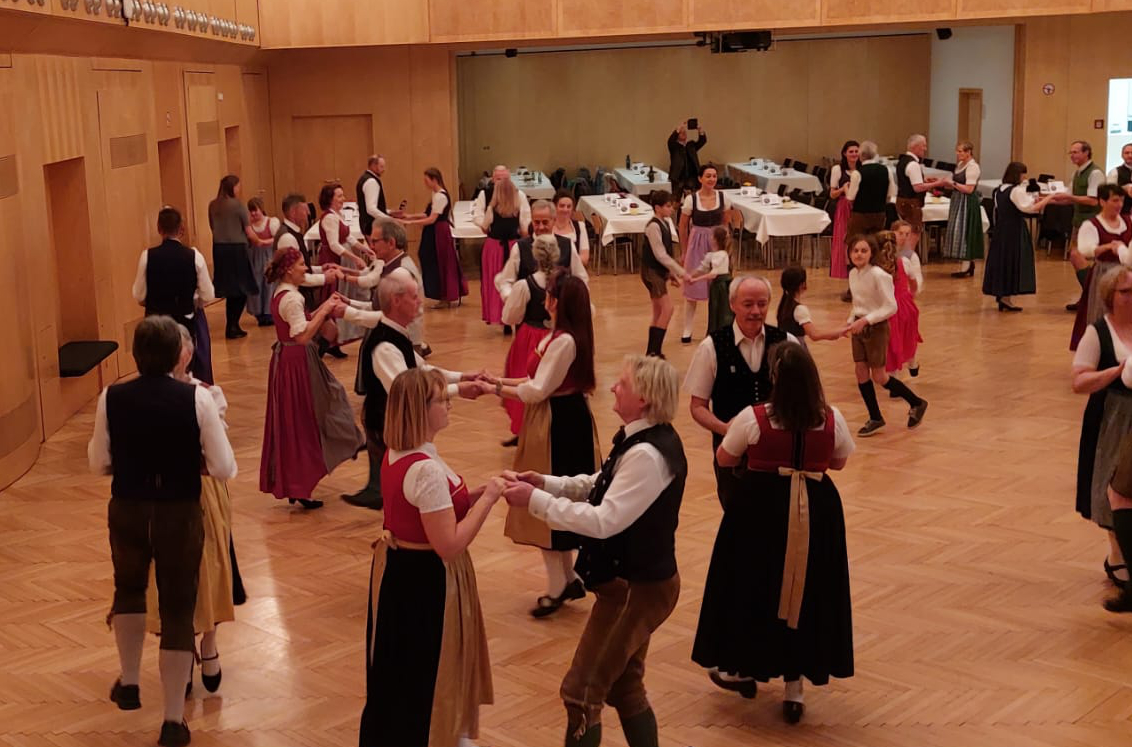 Sechs Tanzpaare unserer Gruppe verbrachten einen schönen Volkstanzabend im Arbeiterkammersaal in Graz mit einem abwechslungsreichen Tanzprogramm.